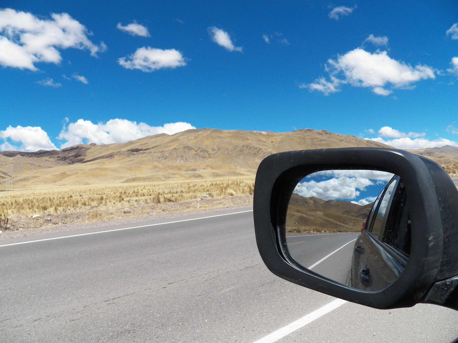Bij stralend weer rijden we Puno uit, snel, langs dezelfde richting waarlangs we de stad zijn binnen gereden, na nog een laatste blik op het meer en omgeving.